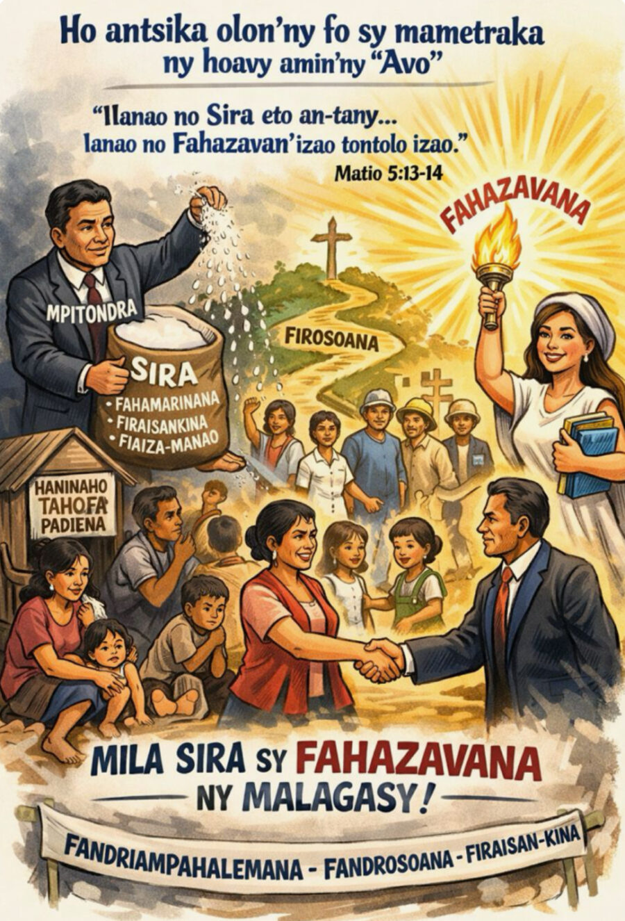 Koa raha te hahita ny ho avy tsara isika, dia tsy maintsy omena sira sy fahazavana ny Malagasy rehetra mba hahafahany mandroso marina ao anatin’ny fandriampahalemana maharitra eto an-tany.